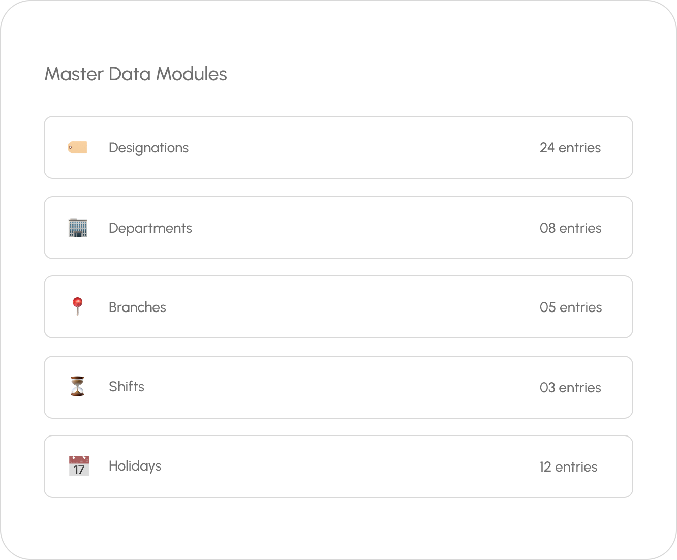 Changes to master data reflect everywhere β€” employee profiles, payroll, reports, and attendance.